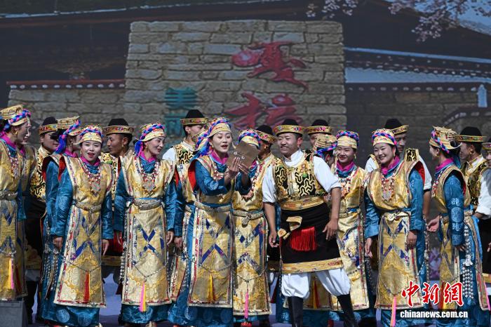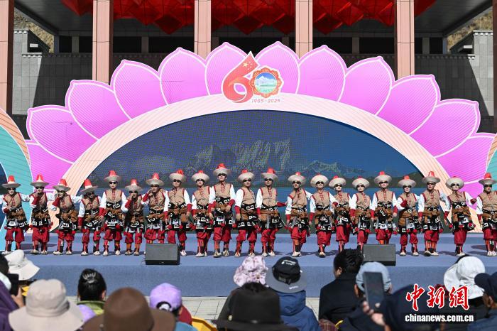 图为山北市隆子县艺术团上演挨墙舞《扎西康桑》。中新社记者 贡嘎去紧 摄