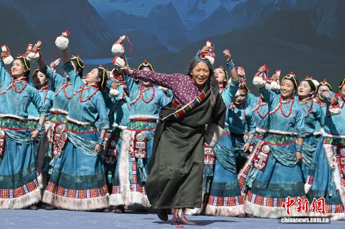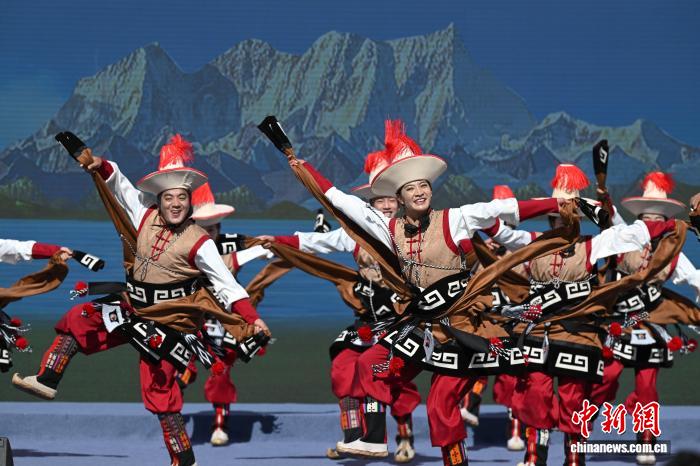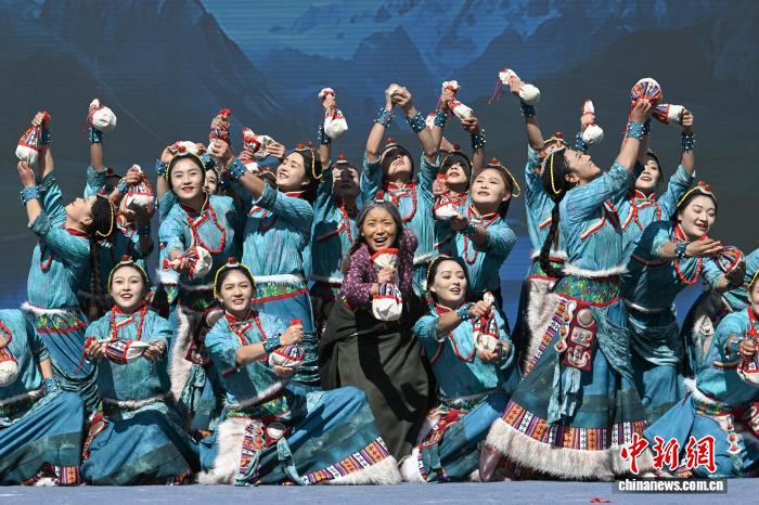 图为阿里区域改则县艺术团演出跳舞《悲舞幸运·改则情》。中新社记者 贡嘎去紧 摄