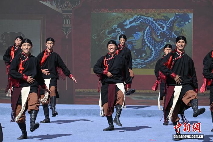 图为昌城市边坝县艺术团演出男子群舞《糌粑揉出幸运情》。中新社记者 贡嘎去紧 摄